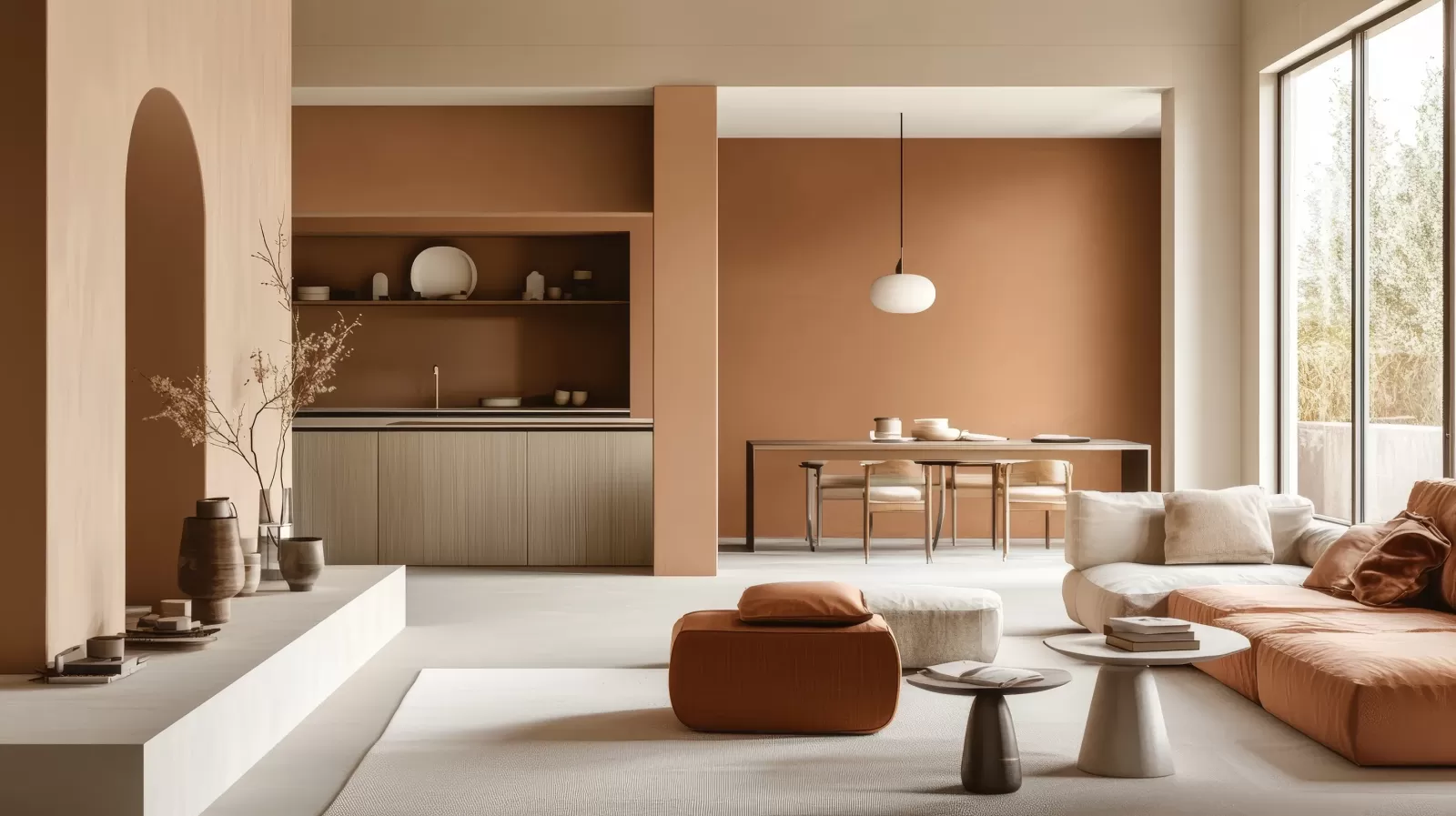 Los colores cálidos transmiten calma y conexión con la naturaleza. Por eso, en 2025 veremos menos espacios completamente blancos y más combinaciones con tonos suaves y naturales. Para quienes buscan un ambiente aún más acogedor, se pueden incorporar acentos en tonos chocolate o mostaza.