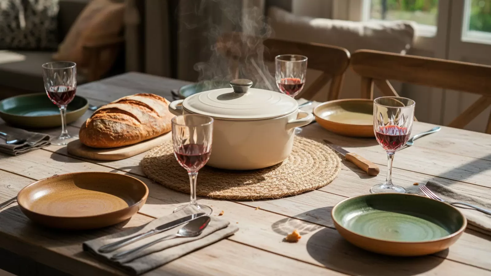 La mayor ventaja de esta tendencia es la versatilidad. Antes, cocinar implicaba usar una olla fea y después tener que pasar la comida a una fuente presentable para llevar a la mesa. Doble trabajo, doble lavado. Con las ollas color crema, ese paso intermedio desaparece. Son tan estéticas que funcionan perfectamente como piezas de vajilla. Imaginátelo: terminás tu guiso o tu risotto, y así como está, humeante y delicioso, lo llevás al centro de la mesa.